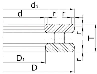 По ГОСТу | Международное | d | D | r | D1 | T | |