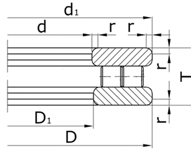По ГОСТу | Международное | d | D | d1 | r | D1 | T | |
