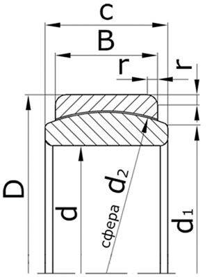 По ГОСТу | Международное | d | D | d1 | D2 | c | B | r | |