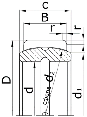 По ГОСТу | Международное | d | D | d1 | D2 | c | B | r | |